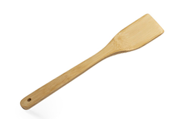 Keukenspatel in natuurlijn vervaardigd in gepolijste bamboe, met gestanste steel om op te hangen.