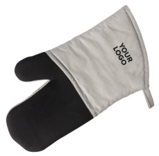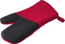 Stevige en dikke katoenen ovenwant met rubberen grip. Gevoerd met molton. Met ophanglus.