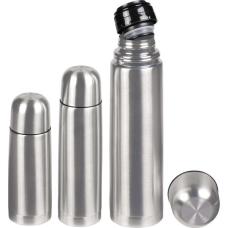 Dubbelwandige, vacuüm geïsoleerde, RVS thermosfles. Onbreekbaar en ijzersterk. De vacuümruimte tussen de wanden isoleert de inhoud en houdt dranken lange tijd warm of koud. Met schroefdop/drinkbeker en handig schenksysteem met druksluiting. Lekvrij. Inhoud 1.000 ml. Per stuk in kraft doos.