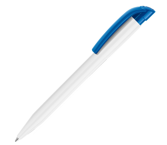 Blauwschrijvende balpen met gekleurde clip.