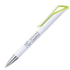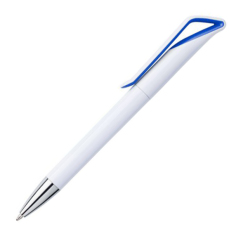 Blauwschrijvende balpen met sierlijke gekleurde clip. Draaimechanisme.