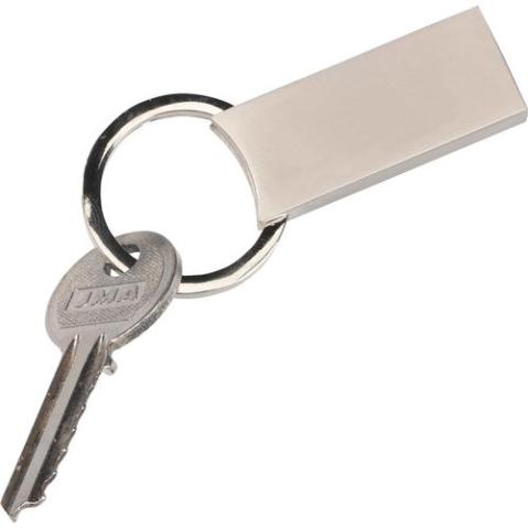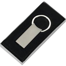 Matmetalen sleutelhanger met stevige zekerheidsring en kliksysteem. Per stuk in kraft envelop.