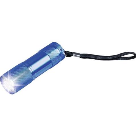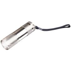 Aluminium staaflampje met 9 felwitte, energiezuinige LED-lampjes en afneembare lus. Afm. Ø 2,7 x 9 cm. Incl. batterijen. Per stuk in doos.