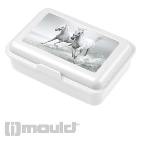 Praktische kleine snackbox met 1 kliksluiting. INCLUSIEF drukkosten voor bedrukking in full colour op het deksel. Exclusief instelkosten.