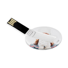 Ronde USB stick 8 GB. Levertijd: 14 werkdagen. INCLUSIEF OPDRUK in max 2 kleuren, op 1 zijde. Prijzen van 1 GB, 2 GB, 4 GB, 16 GB en 32GB op aanvraag.