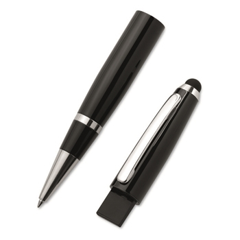 Stylus balpen met draaimechanisme en USB memory stick 8 GB die in de pen is geïntegreerd. Zwarte inkt. Levertijd: 17 werkdagen. INCLUSIEF OPDRUK in max 2 kleuren, op 1 zijde. Prijzen van 1 GB, 2 GB, 4 GB, 16 GB en 32GB op aanvraag.