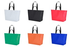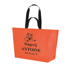 Ruime gelamineerde draagtas, met brede bodem van 25cm. Met dubbele hengsels, korte en lange.