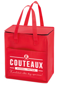Koeltas in non-woven materiaal, met ritssluiting en voorvak. Met isolatiefolie aan de binnenkant.