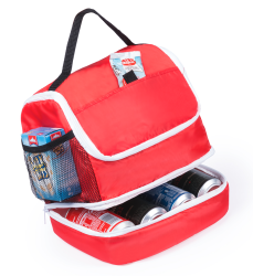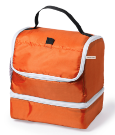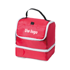 210D polyester koeltas met 2 afzonderlijke vakken. Binnenzijde in isolatiefolie. Met insteekvakje in de flap.